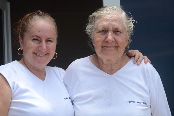 Ingeborg Wittmer (rechts), die letzte Überlebende der erste Siedlergeneration, und ihre Tochter Erika.