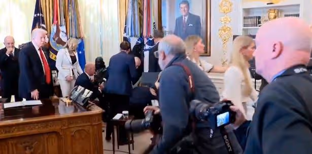 Am Donnerstag fiel ein Gast im Oval Office während Donald Trumps Ankündigung zur Senkung der Kosten für Abnehmmedikamente in Ohnmacht, woraufhin die Veranstaltung abgebrochen werden musste. Später am selben Tag verbreitete sich ein Foto von Trump, der tatenlos zusah, wie sich die Anwesenden um den Mann kümmerten, rasant im Internet.